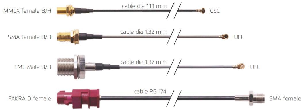- External antennas for: ISM, WiFi, Bluetooth, 4G/3G/2G, TETRA, GNSS (GPS, GLONASS,...)