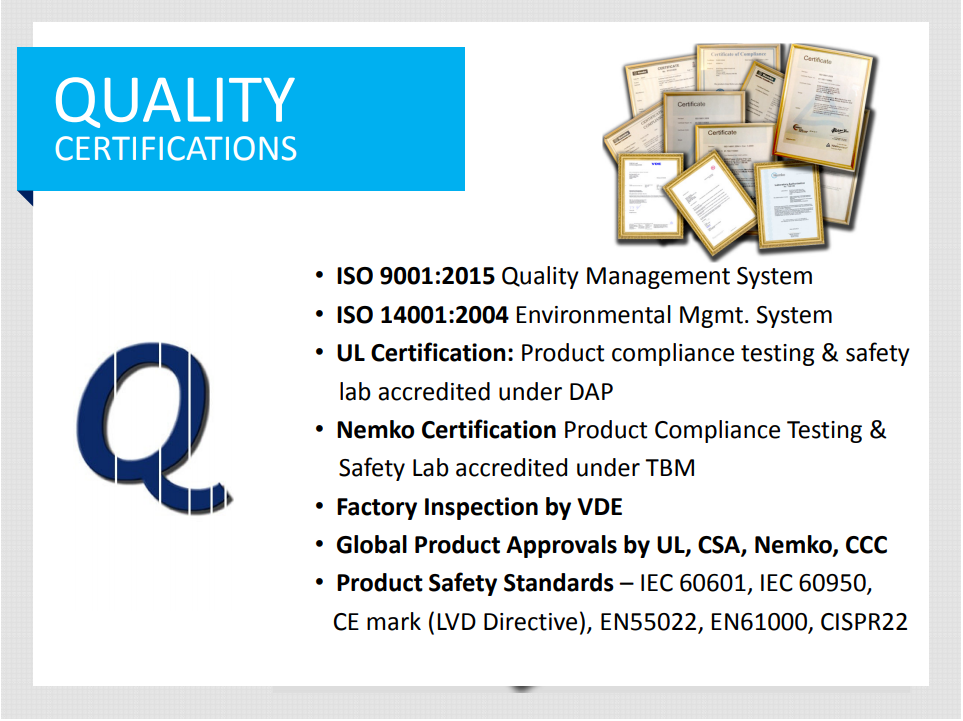 - Approval to EN60601 3rd Edition,Dual fusing