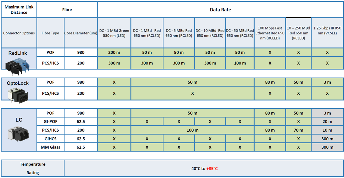 - DC - 1, 2, 10, 50MBd with 650nm RCLED