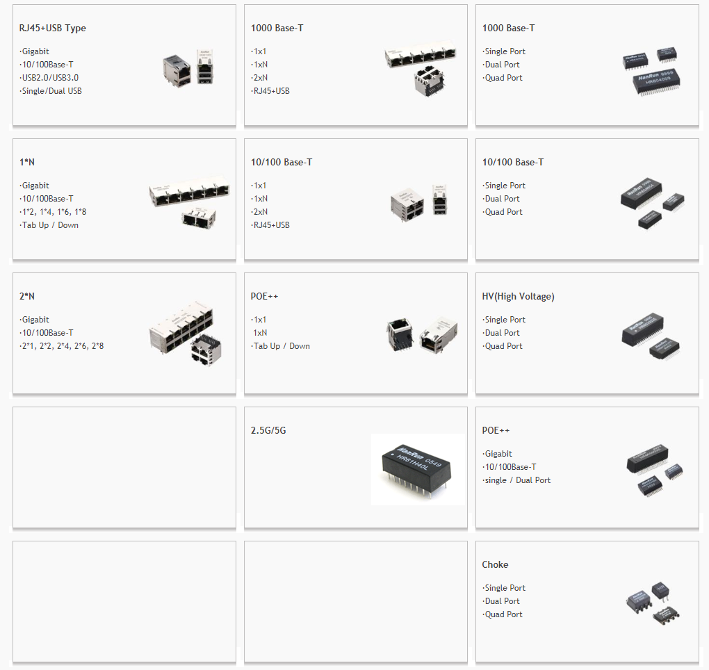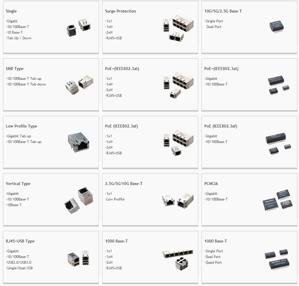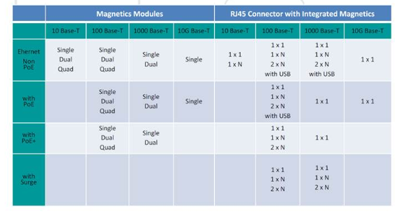 LAN Magnetics and RJ45 with integrated Magnetics: