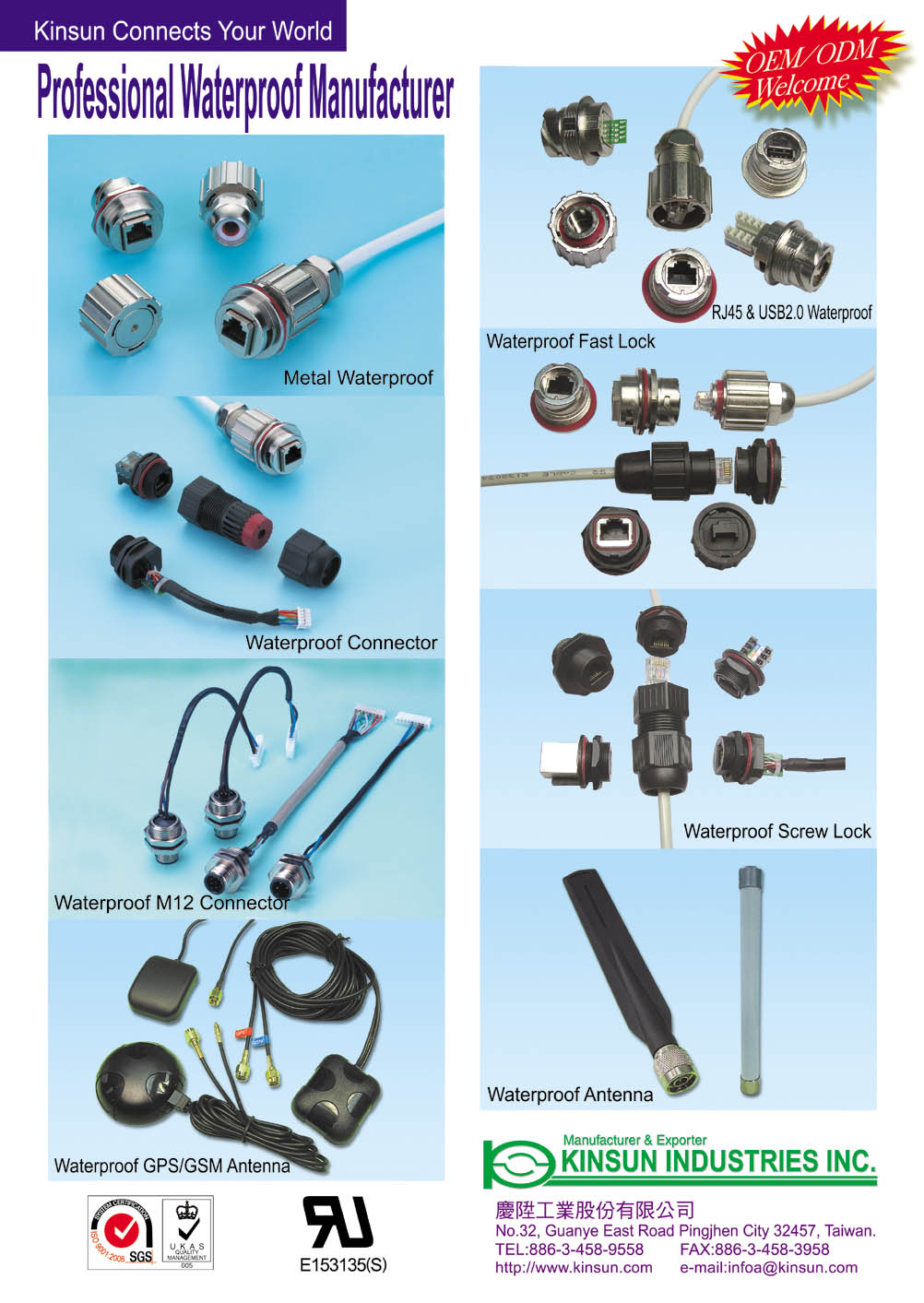 KINSUN have experience manufacturing connector and antenna for many different Automotive, Motorcycle, Electric Vehicle and Heavy Equipment. Their designs and manufactures of customized connector product, in which meets the demand of today's energy markets and the desires of consumers. They are certified of IATF-16949, ISO-9001 and ISO-14001. They also supply customized connector and antenna to the automotive as that includes: