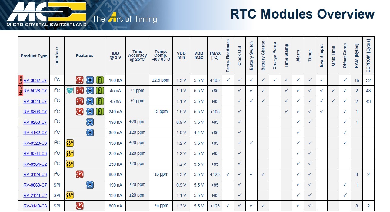 - Wide Timekeeping Voltage: 1.3V to 5.5V