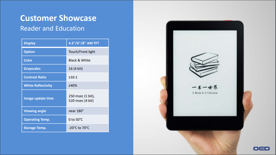 OED is a world leader in the research, development and manufacture of O-paperTM electronic paper displays
