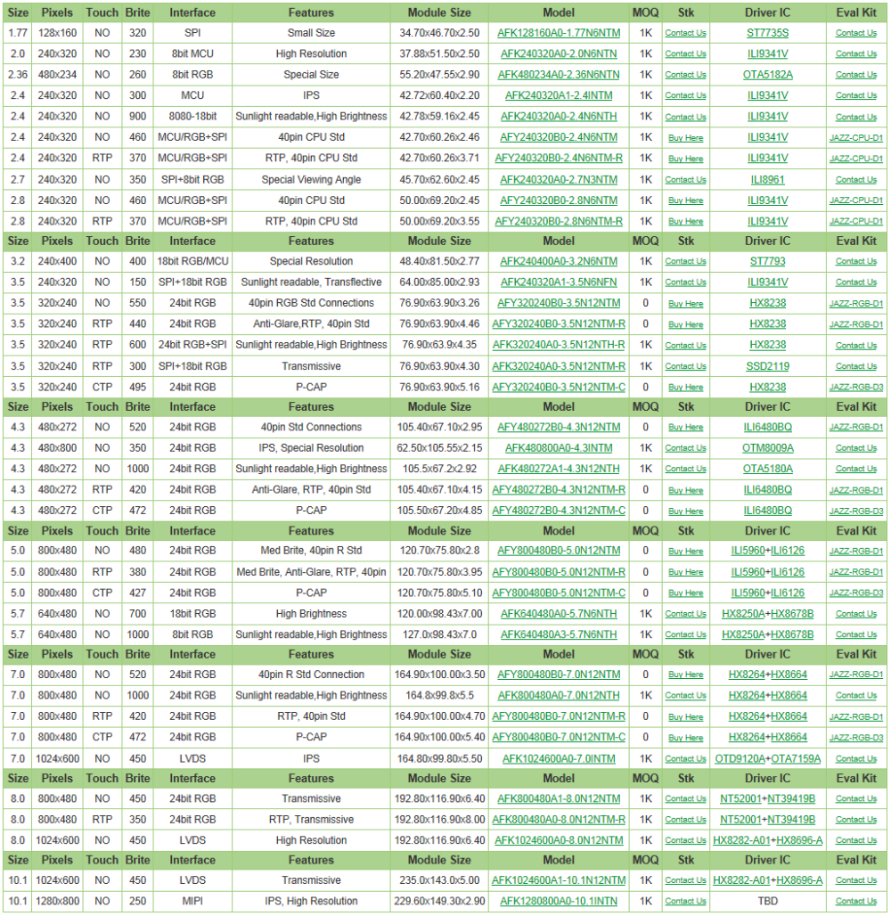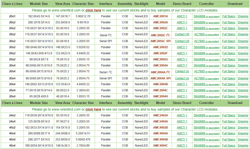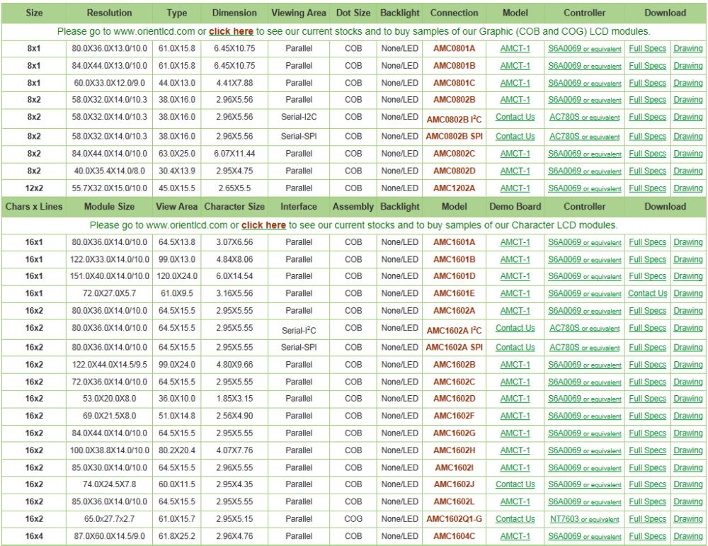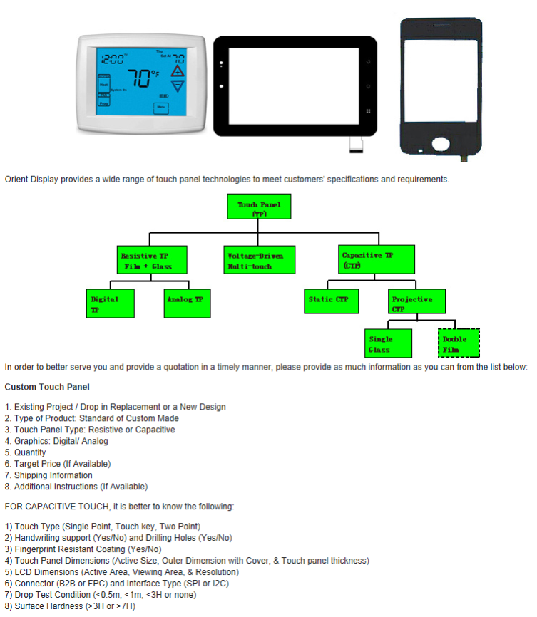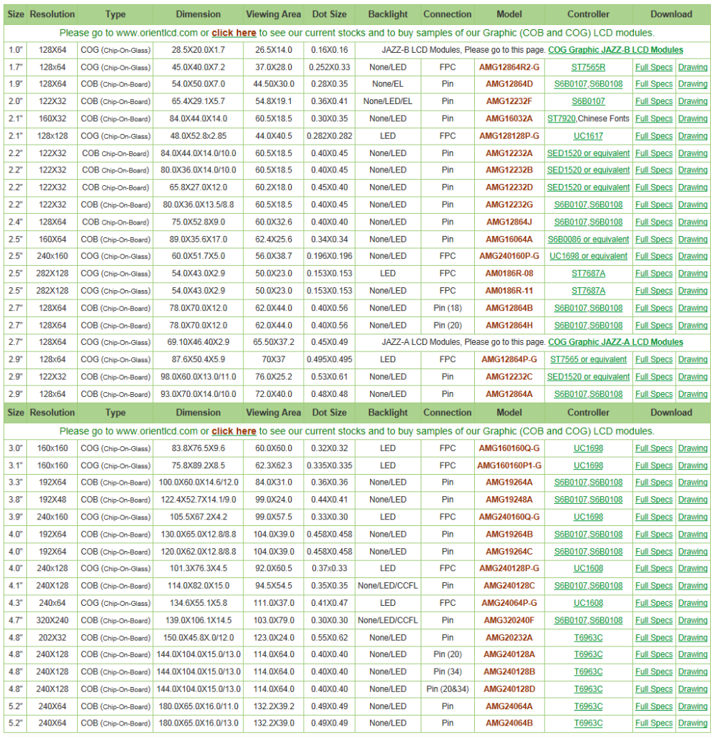 For more technical Details and Product search please refer to the Orient Display Webpage: