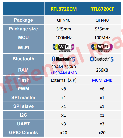 REALTEK IoT Controller SoCs - Single Chip Solution - 2.4G WiFi (11n) - GPIO ports ADC, DAC, USB, SDIO Customer and Project have to meet Realtek Project criteria. Contact MEV Line Management for data sheet and ref design. |