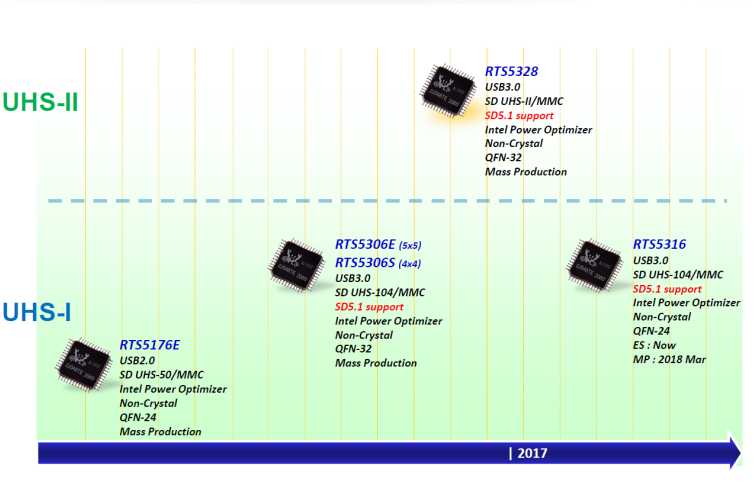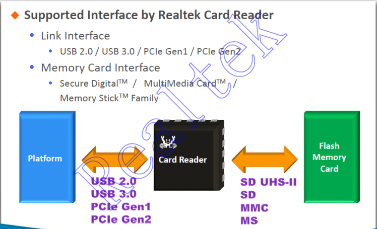 REALTEK Card Reader Controllers - Flash Card Interfaces: SD UHS-II / SD / MMC / MS - Host Interfaces: USB2.0 / USB3.0 / PCIe ![]() Customer and Project have to meet Realtek Project criteria. Contact MEV Line Management for data sheet and ref design. |