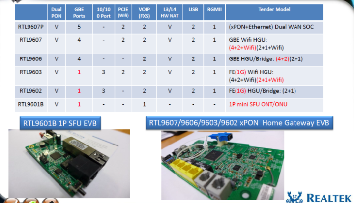 REALTEK xPON ICs - GPON, EPON and active fiber mode - Interoperable with all major OLT Vendors - Up to 5 embedded GE Ports and WiFi Customer and Project have to meet Realtek Project criteria. Contact MEV Line Management for product proposal, data sheet and ref design. |