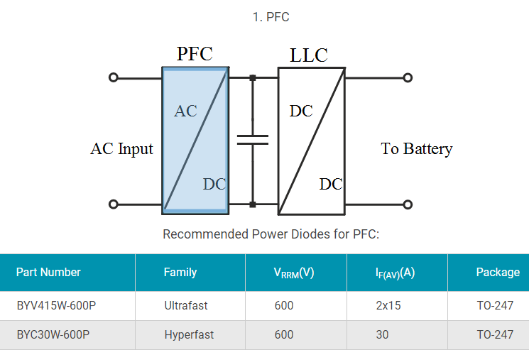 - Standard reverse recovery, not intended for fast switching applications, not for PFC