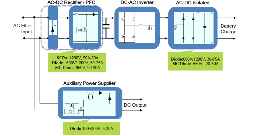 - Very high current surge Itsm = 715A @ 8.3ms and 650A @ 10ms