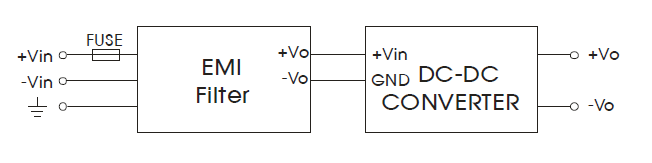Low profile Brick Format, inclusive EMI Filter and buffer capacitors No extra components required |