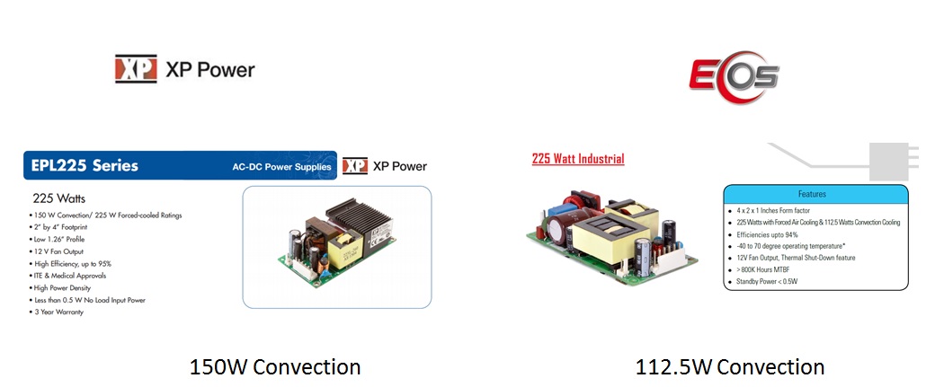 225W forced air cooling 150W convection cooled |